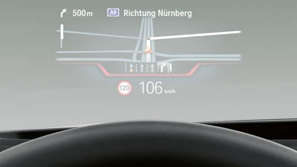 The full-colour BMW Head-Up Display projects all information relevant to the journey directly into the driver's field of vision.