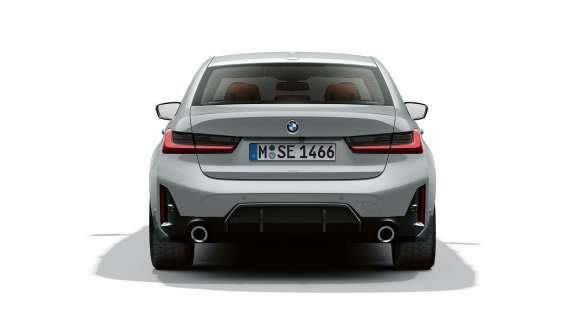 The distinctive bumper creates an especially athletic appearance for the BMW 3 Series Sedan. Vertical reflectors and broad tailpipe trims with a chrome element in the M Sport package reinforce this effect. The large diffuser between the tailpipes rounds off the sporty and dynamic look.