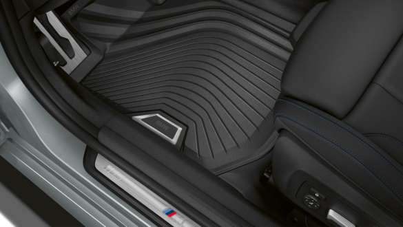 The perfectly fitted, durable BMW all-weather floor mats with a raised border and elegant design protect the front footwell against moisture and dirt. They are black and feature a high-quality stainless steel inlay.