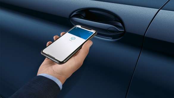 The BMW Digital Key turns your compatible smartphone* into a vehicle key. To unlock, simply hold the smartphone next to the door handle; before starting your BMW place it on the smartphone tray. In addition, you can send a Digital Key to up to five friends, and even limit the maximum speed, for example – ideal for novice drivers.