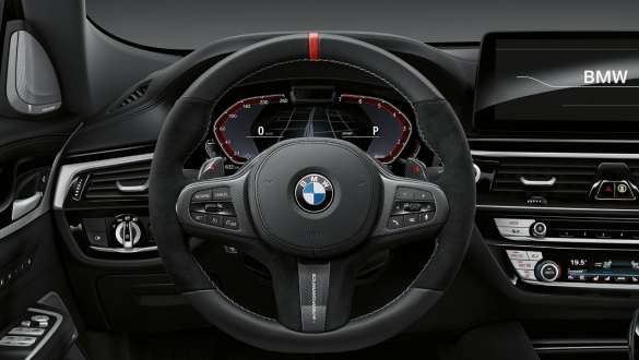- M interior trim finishers in Aluminium Rhombicle Smoke Grey with Pearl Chrome accent trim; other trims available