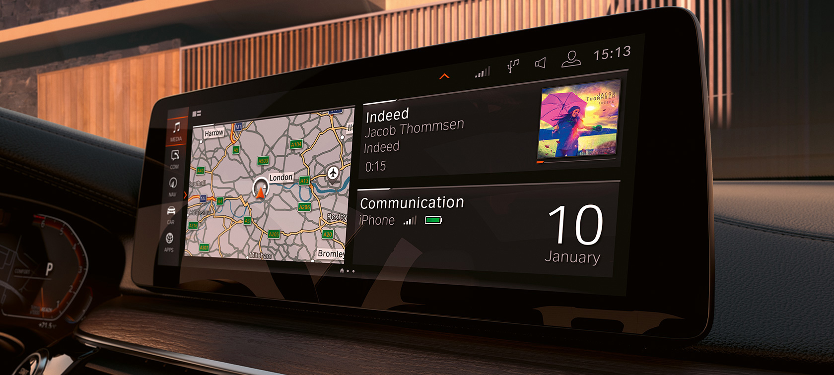 The BMW Live Cockpit Professional with navigation function includes two high-quality displays consisting of a high-resolution 12.3" Control Display that can be operated by touch and a fully digital 12.3" instrument display. The BMW Operating System 7 can also be operated via the iDrive Controller*.