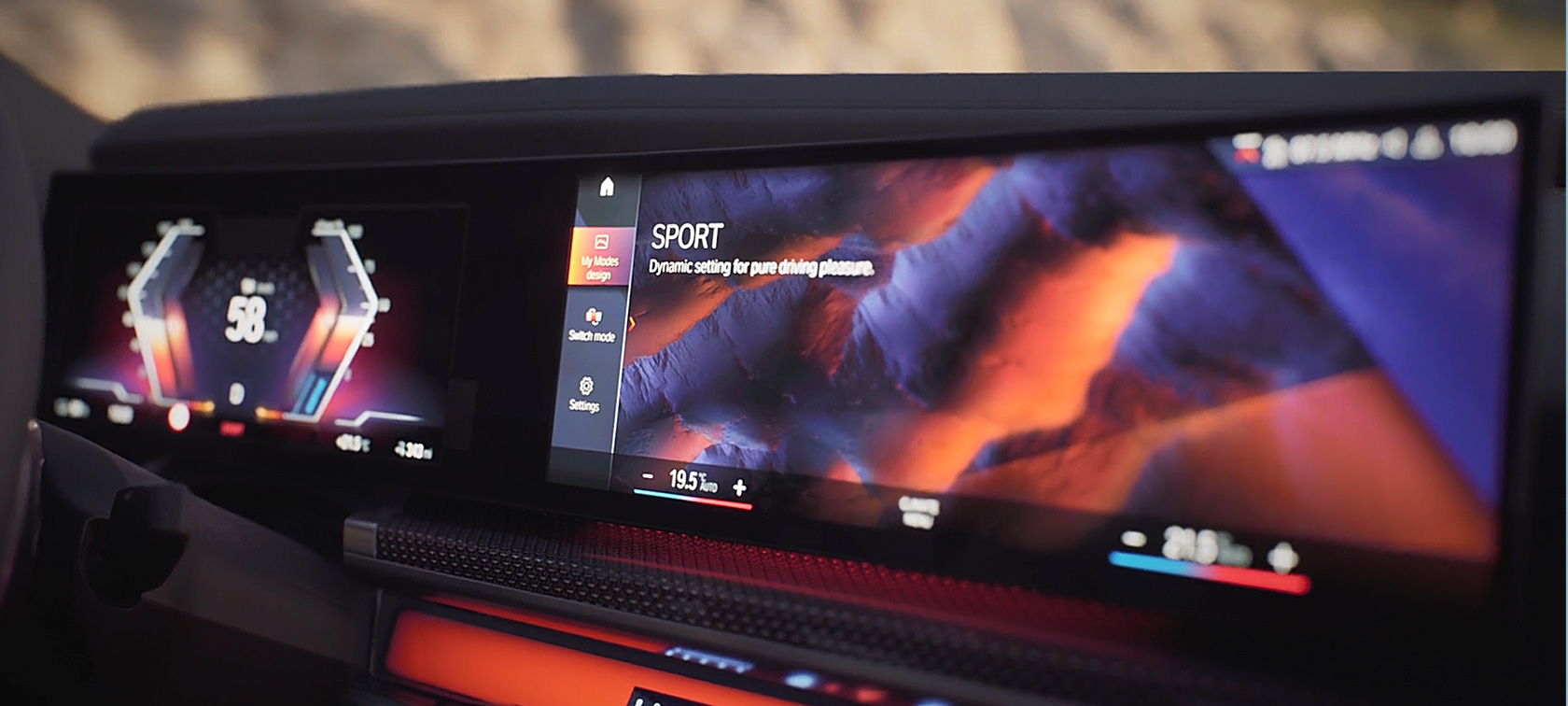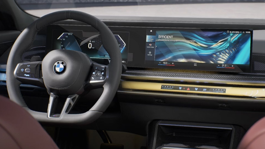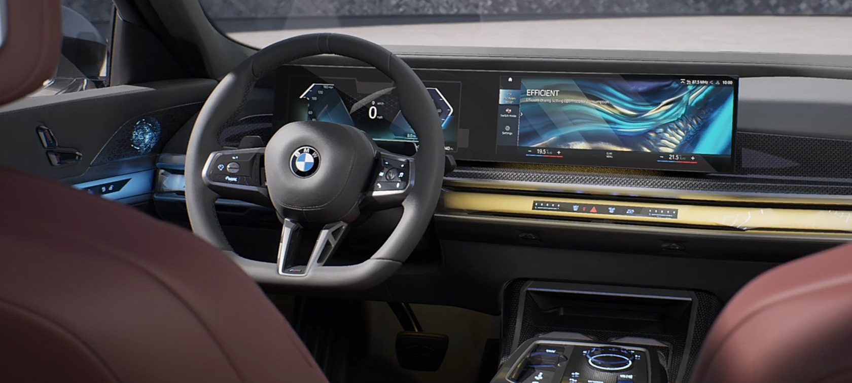 The BMW Interaction Bar, a multifunctional control element, extends horizontally across the entire cockpit. Completing the multimedia experience is the 14.9” BMW Curved Display.[1]