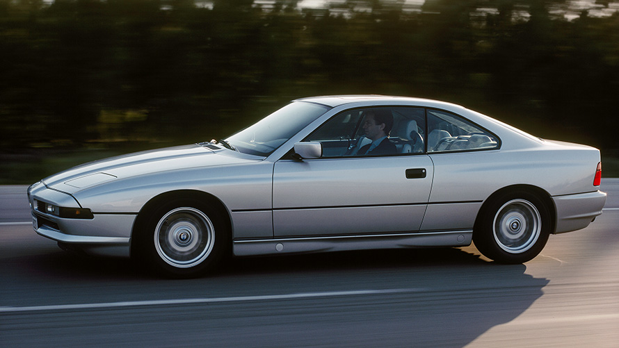 At its launch at the 1989 International Motor Show (IAA) in Germany, the effective successor to the BMW 6 series (E24) is so well received that 5,000 have been pre-ordered before the first BMW 850i has even been delivered. The wedge-shaped body with the long hood and the steep rear is designed by Klaus Kapitza. Its flat front is reminiscent of the BMW M1. The flowing, exceptionally elegant lines promise a performance that is easily delivered by the V12-cylinder engine with its five liter displacement and an output of 220 kW (300 hp).