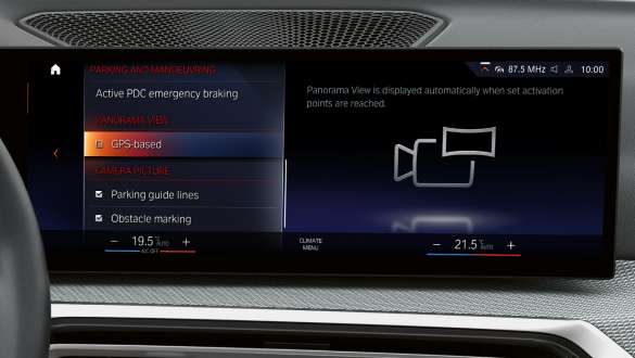 A better view when parking and manoeuvring: Parking Assistant Plus supplements the standard Park Distance Control with additional cameras. Thanks to the panoramic and 3D view of the vehicle’s surroundings, you can manoeuvre effortlessly even in tight spaces. This prevents parking damage and accidents in unclear situations.