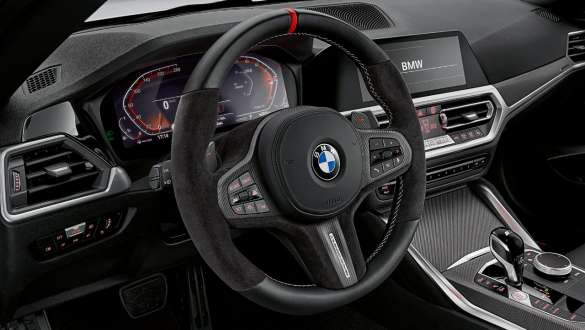 The M Performance carbon fibre rear spoiler enhances the car's premium-quality, dynamic appearance and ensures optimised aerodynamics.