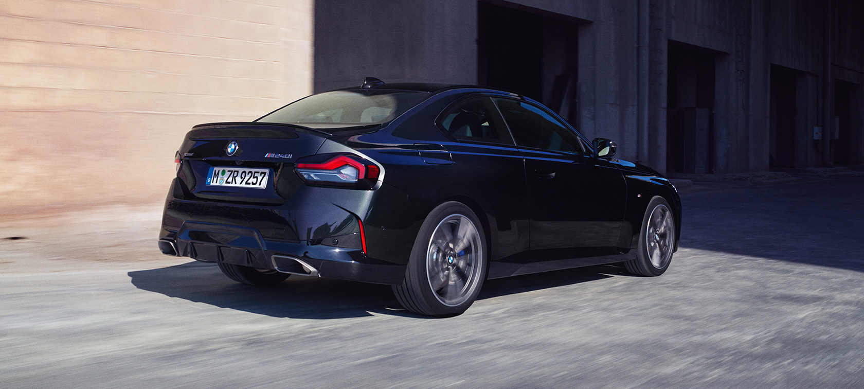 The muscular wheel housings and the typical M wheel arches emphasise the broad and powerful stance of the BMW 2 Coupé on the road, conveying its power and athleticism impressively to the outside. The rear lights reveal a completely new interpretation of the characteristic L-shape as they spread pulsatingly to the sides.