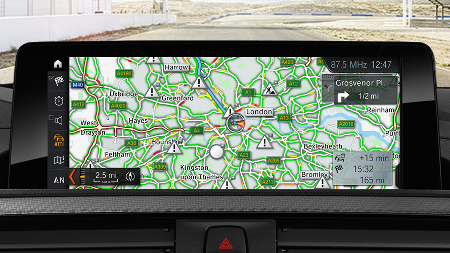 Real Time Traffic Information (RTTI) provides the most up-to-date traffic information at all times. Precise details about the location and duration of delays are transmitted in order to keep the driver informed, practically in real time, about the current traffic situation on motorways, country roads and on many routes within the city. Intelligent alternative route suggestions help the driver reach their destination as quickly and efficiently as possible. The data are drawn from such sources as anonymous movement profiles from the GPS data of vehicle fleets, smartphone apps and police reports, and also takes into account established traffic patterns such as peak commute times.