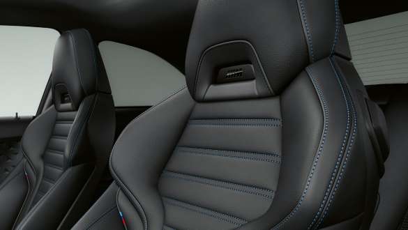 The M sport seats with partially integrated head restraint in bucket seat style.