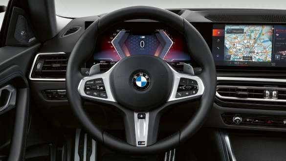 The M Leather steering wheel including multifunction buttons, an M badge and an integrated driver-side airbag is featured in three-spoke design. With a steering wheel rim in leather 'Walknappa' Black with black stitching and contoured thumb rests, it provides a direct, athletic steering experience.