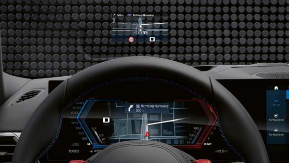 BMW Live Cockpit Professional with its large curved display expands BMW Live Cockpit Plus with a full-colour head-up display. This projects driving information such as speed or navigation instructions directly into the field of vision – for a better overview and more safety.
