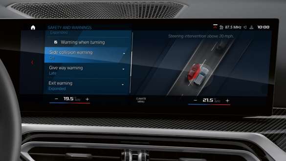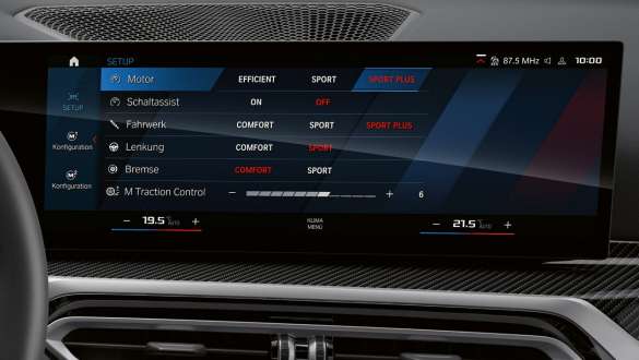 The BMW Operating System 8 simplifies vehicle operation, e.g. by voice and touchscreen. The highlight is the M-specific design: Content in 2D ensures the best recognisability; the M logo can be found in the presentation of the content. The two M modes ROAD and SPORT create an individual, emotional driving experience.