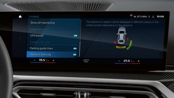 A better view when parking and manoeuvring: Parking Assistant Plus supplements the standard Park Distance Control with additional cameras. Thanks to the panoramic and 3D view of the vehicle’s surroundings, you can manoeuvre effortlessly even in tight spaces. This prevents parking damage and accidents in unclear situations.
