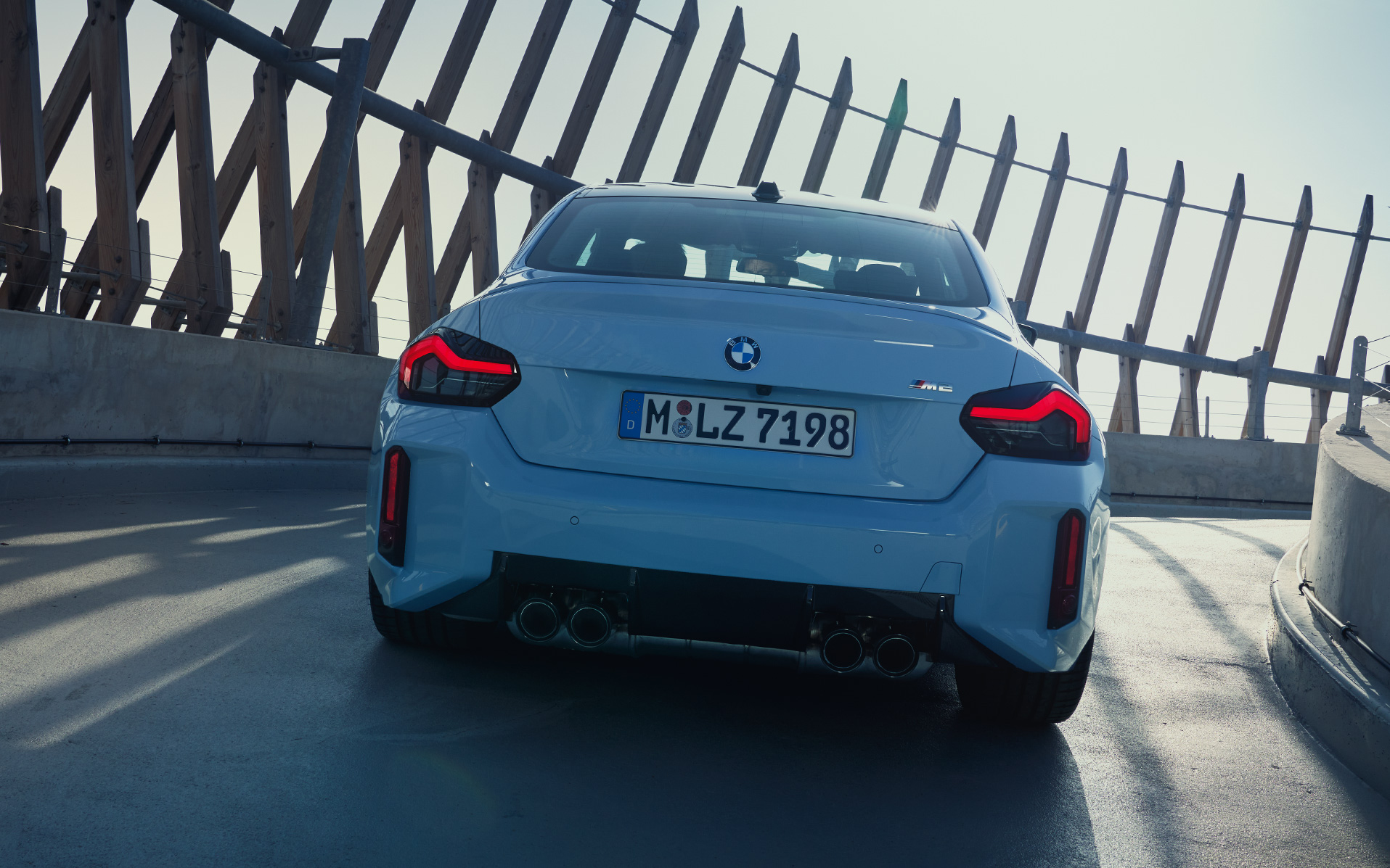 The muscular wheel housings and the typical M wheel arches emphasise the broad and powerful stance of the BMW 2 Coupé on the road, conveying its power and athleticism impressively to the outside. The rear lights reveal a completely new interpretation of the characteristic L-shape as they spread pulsatingly to the sides.