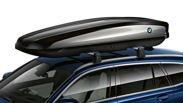 The modern roof box in black with titanium silver side panels has a capacity of 520 litres and is compatible with all BMW roof rack systems. Due to the fact that it can be opened from both sides and has triple central locking on each side it is convenient to load and lock for theft protection.