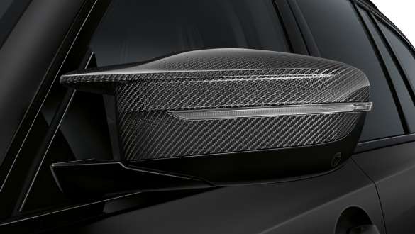 The M Carbon exterior package underlines the athletic demands of the vehicle. Spoiler elements in the front bumper and exterior mirror caps are made of carbon-fibre reinforced plastic (CFRP). The package is rounded off by a striking carbon-fibre diffuser insert at the rear.
