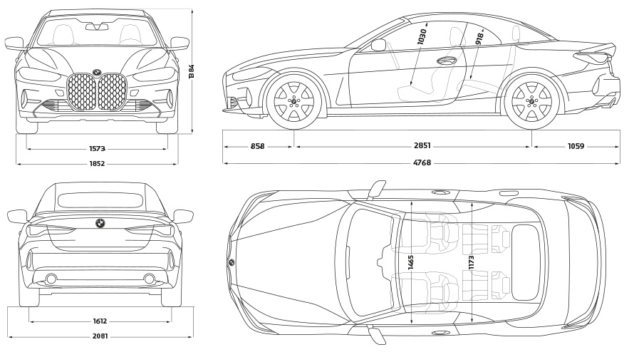 BMW M4 Competition Convertible with M xDrive, BMW M440i xDrive, M440i and M440d xDrive Convertible – engines, facts and dimensions.