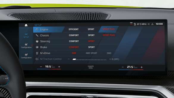 The M Setup* allows you to configure various driving dynamics parameters such as engine, transmission and steering characteristics, damper settings, Dynamic Stability Control (DSC) control intensity or the power distribution of the optional M xDrive all-wheel-drive system according to your individual requirements. M Setup is available for BMW M4 Competition Coupé and BMW M4 Coupé.
