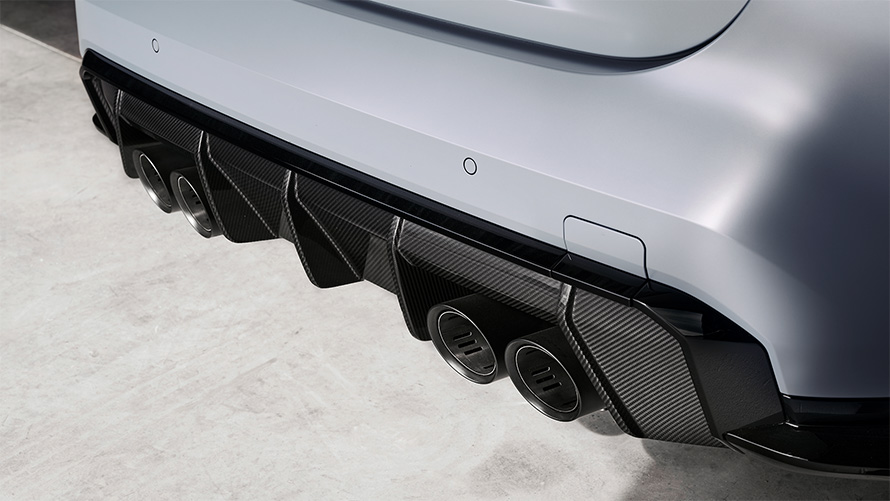 The BMW M4 Competition Coupé and the BMW M4 Coupé impress visually with their athletic and charismatic design. With the high-quality equipment of BMW M Performance Parts, you further accentuate the motorsport character of the vehicle – for an appearance with maximum dynamic flair.