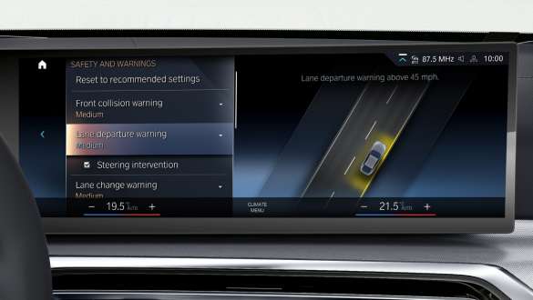 BMW Live Cockpit Professional with its large curved display expands BMW Live Cockpit Plus with a full-colour head-up display. This projects driving information such as speed or navigation instructions directly into the field of vision – for a better overview and more safety.