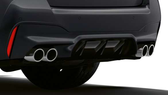 The M Sport brake has four-piston fixed callipers at the front and single-piston floating callipers at the rear in blue with the M designation and features large brake discs to ensure an outstanding braking performance. Due to specific material properties, increased operating noise may occur during braking, e.g. in case of prolonged, low load or in wet conditions shortly before vehicle standstill. The design-related noise can be avoided by braking the brake dry in case of wetness or loading the brake more heavily after a long, low braking load. The influence of wetness and road salt cause brake effectiveness to correspond to that of a conventional brake system. This reduced braking power can be compensated for with a greater pressure on the pedal. The functional noises have no influence on the performance, operational safety and stability of the brake.