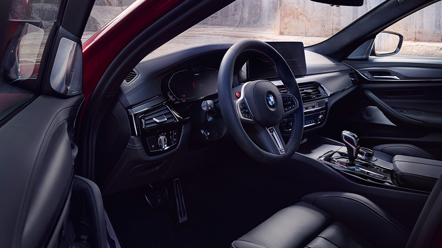 As soon as the door is opened, the illuminated door sill finishers with “M5” designation increase the thrill of anticipation for the following driving experience.
