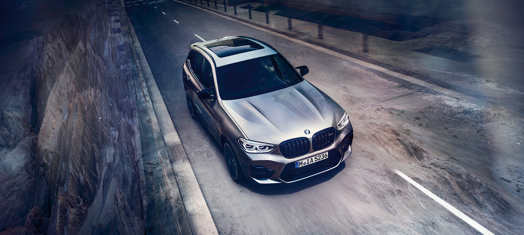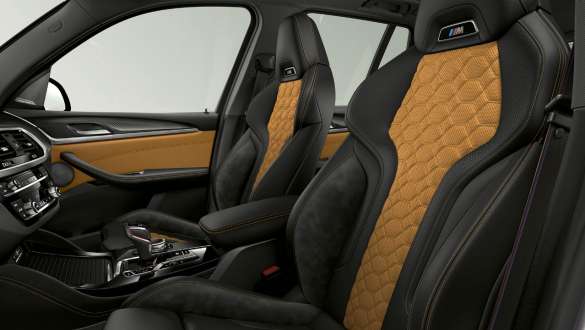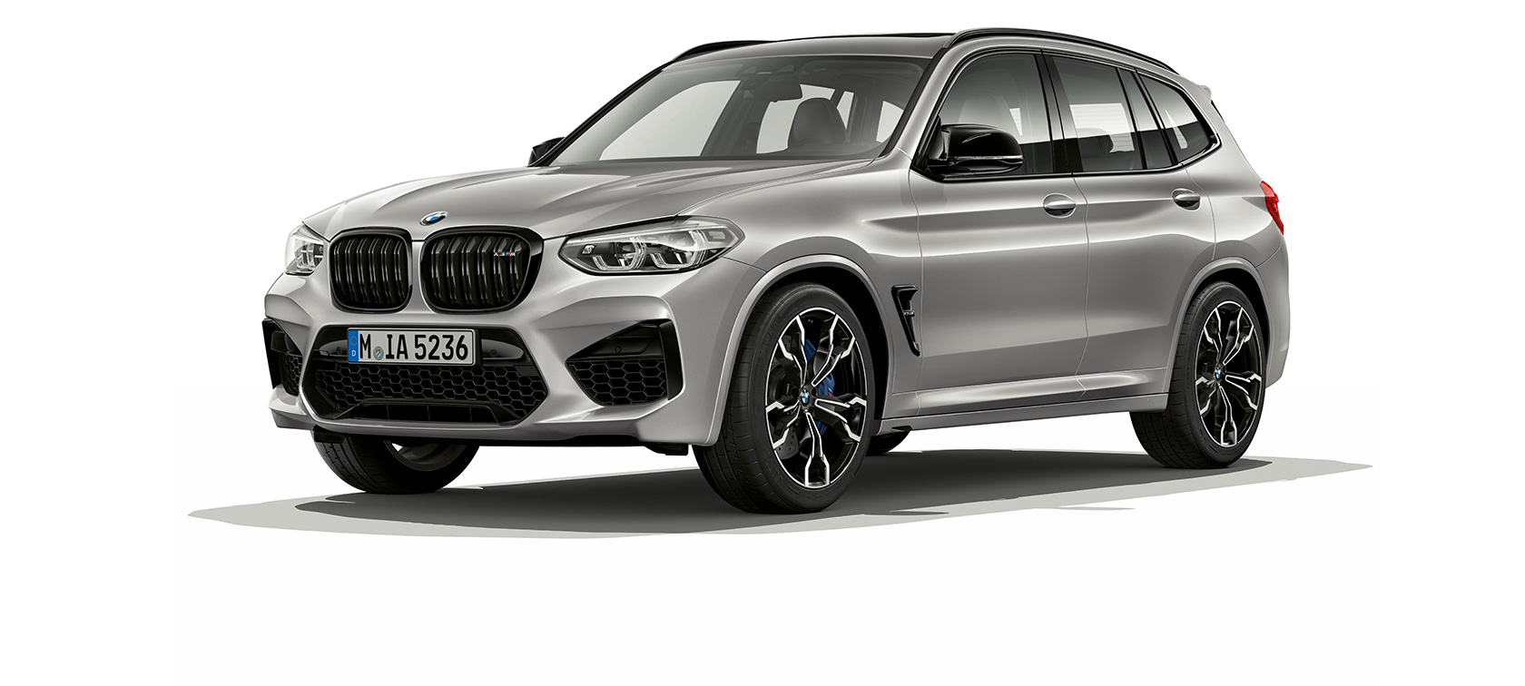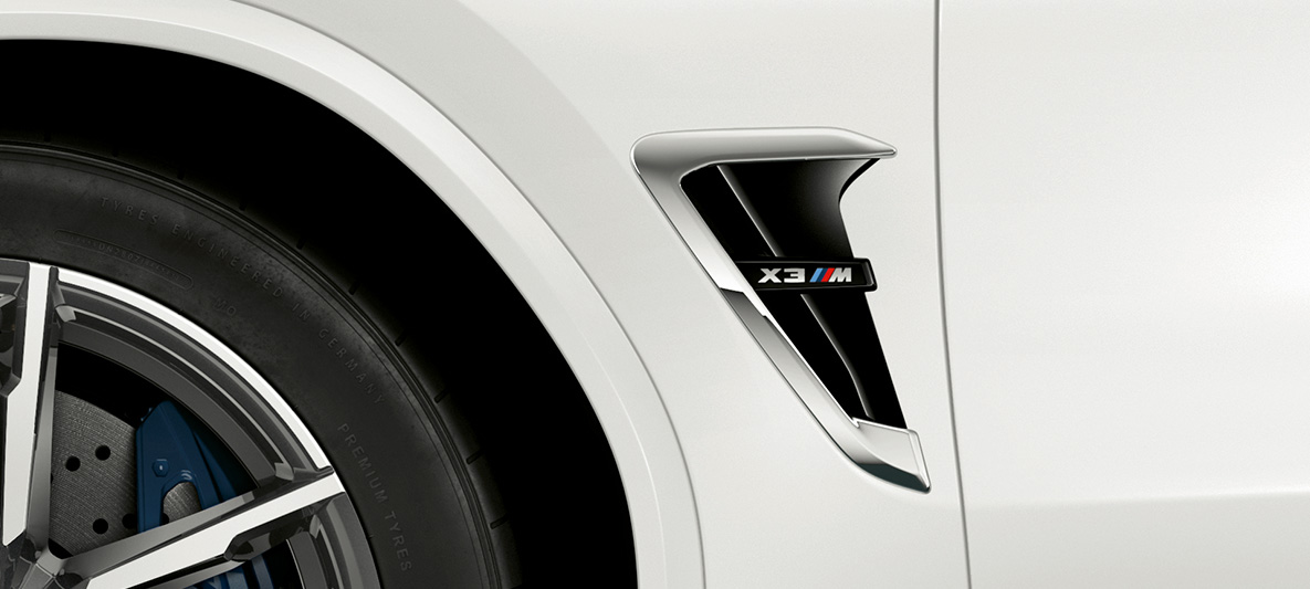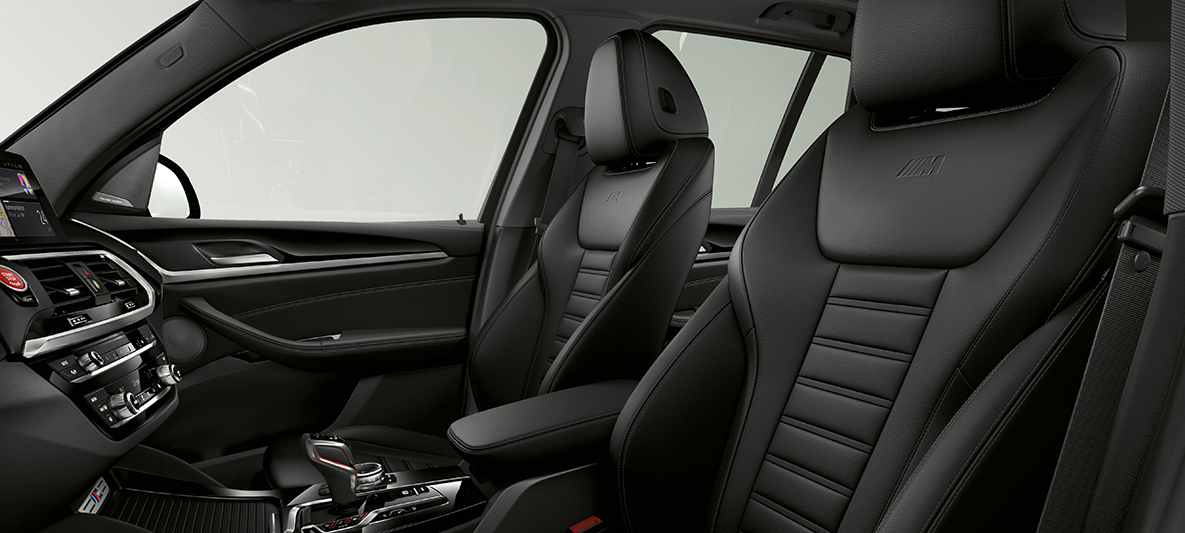 A sporty expression for the spirit of adventure: the BMW X3 M. Powerful proportions and expressive M design elements confidently refer to the motorsport DNA of this X model. Burnished 20-inch M light alloy wheels in Orbit Grey give the vehicle a superior basis. Chrome highlights on the kidney frame and gills as well as exhaust tailpipes in chrome emphasise the exclusive sporty character. The athletic expression continues in the interior. Sport seats for driver and front passenger made of leather 'Vernasca' Black offer perfect seating comfort – in everyday life as well as for dynamic driving on the race track. The exclusive interior is rounded off by high-quality details such as the BMW Individual headliner anthracite or the M leather steering wheel with M specific contrast stitching.