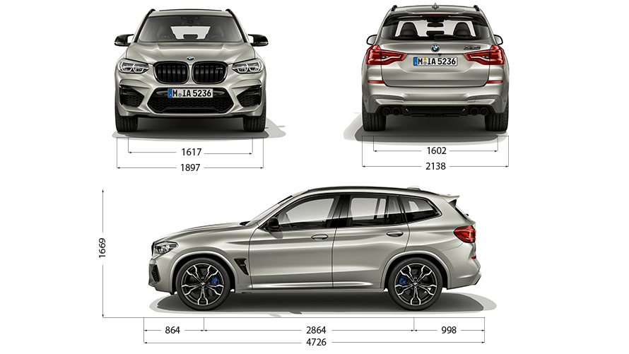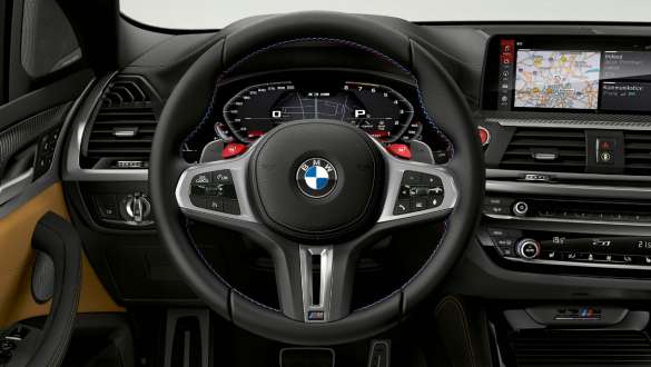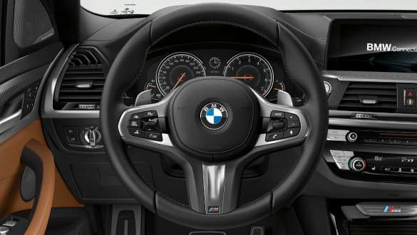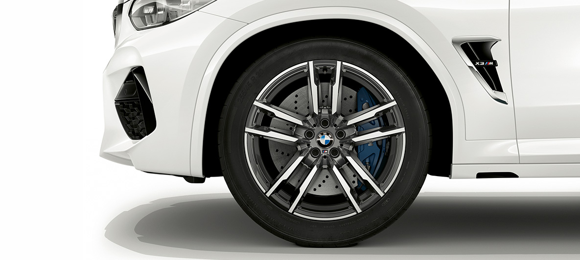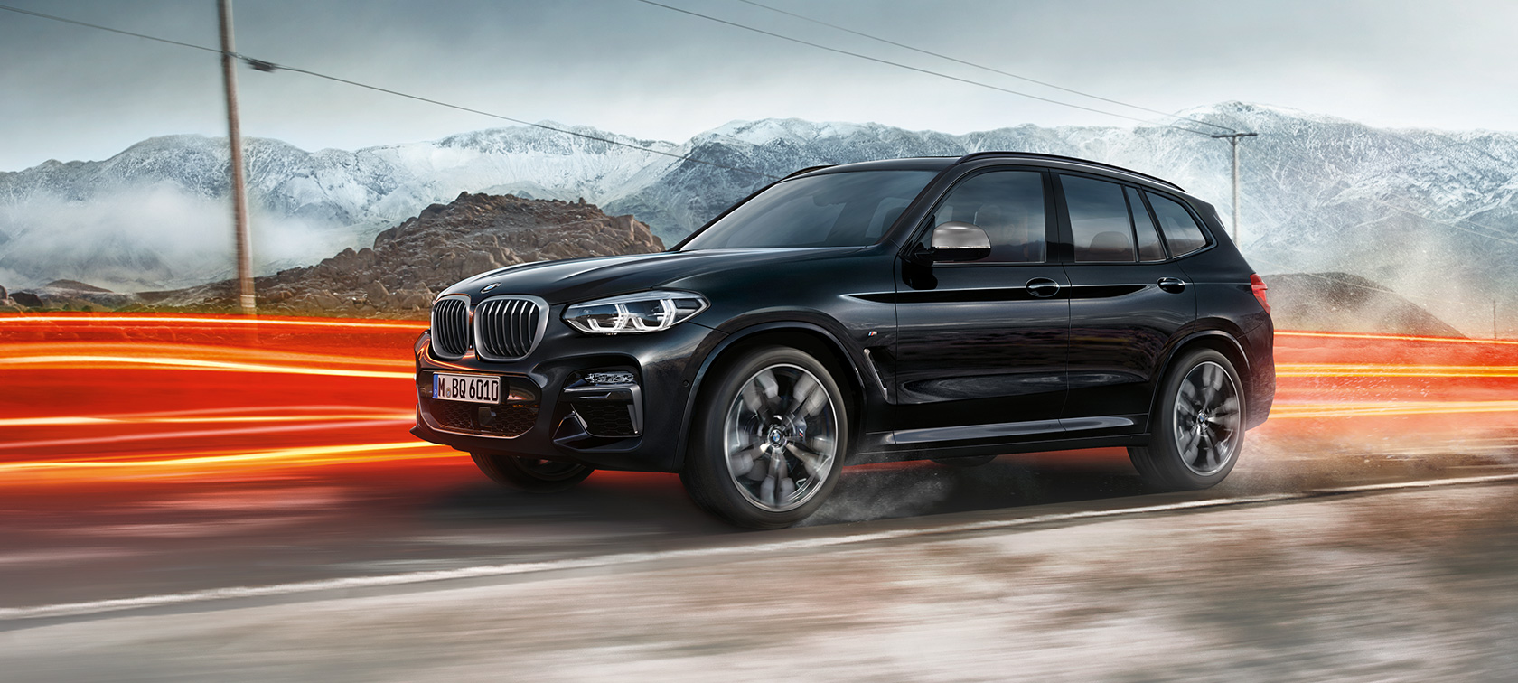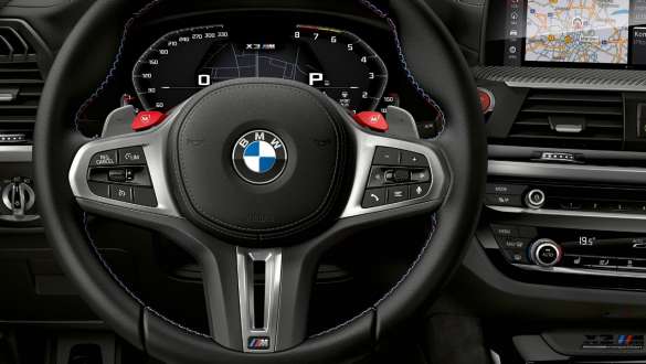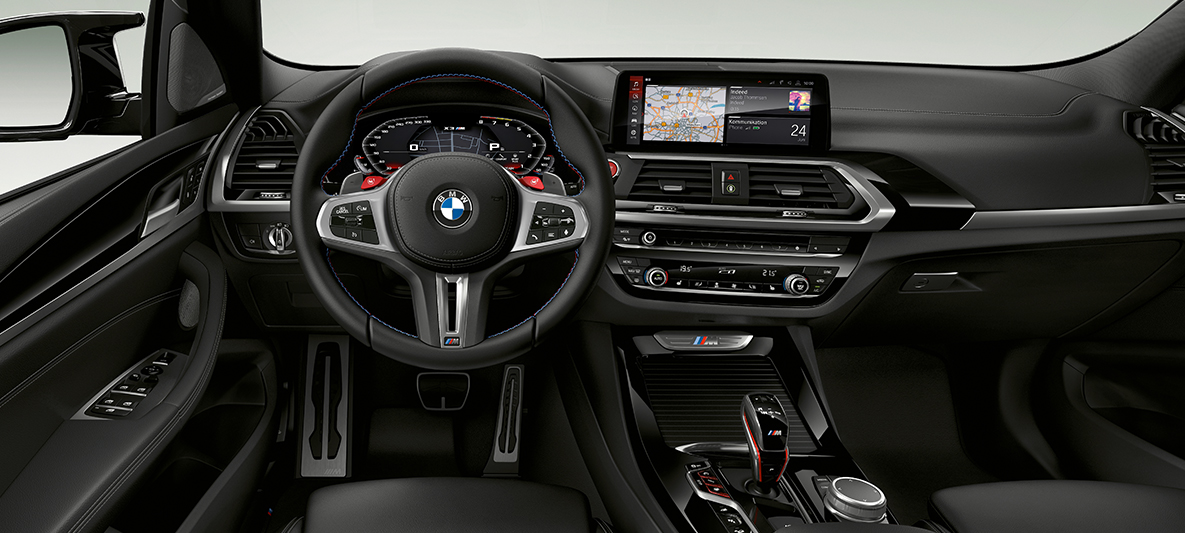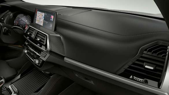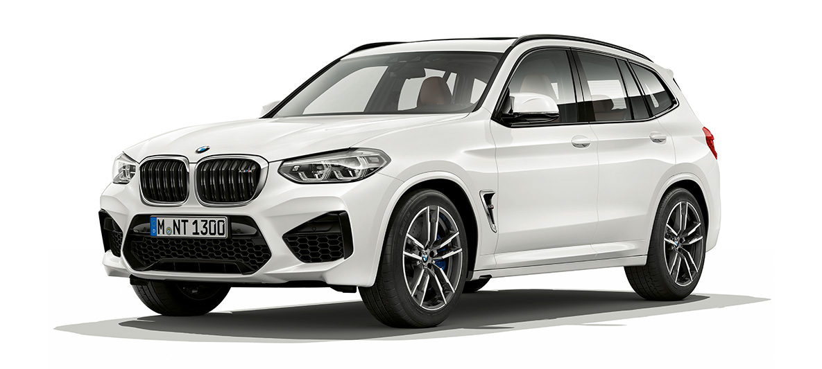 A sporty expression for the spirit of adventure: the BMW X3 M. Powerful proportions and expressive M design elements confidently refer to the motorsport DNA of this X model. Burnished 20-inch M light alloy wheels in Orbit Grey give the vehicle a superior basis. Chrome highlights on the kidney frame and gills as well as exhaust tailpipes in chrome emphasise the exclusive sporty character. The athletic expression continues in the interior. Sport seats for driver and front passenger made of leather 'Vernasca' Black offer perfect seating comfort – in everyday life as well as for dynamic driving on the race track. The exclusive interior is rounded off by high-quality details such as the BMW Individual headliner anthracite or the M leather steering wheel with M specific contrast stitching.