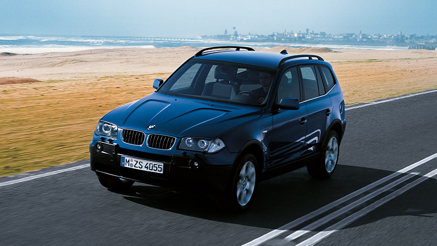Virtually unrivaled, the BMW X3 was unveiled at the 60th International Motor Show (IAA) in Germany in 2003. The new intelligent BMW xDrive all-wheel drive is launched here, enabling continuous variable power distribution between the front and rear axles. Another new feature is the beefy and athletic design with the striking front end with bi-xenon lights brushing against the kidney grille. They feature the characteristic parking light rings, making BMW vehicles from this period clearly recognizable from a distance – even in the dark.