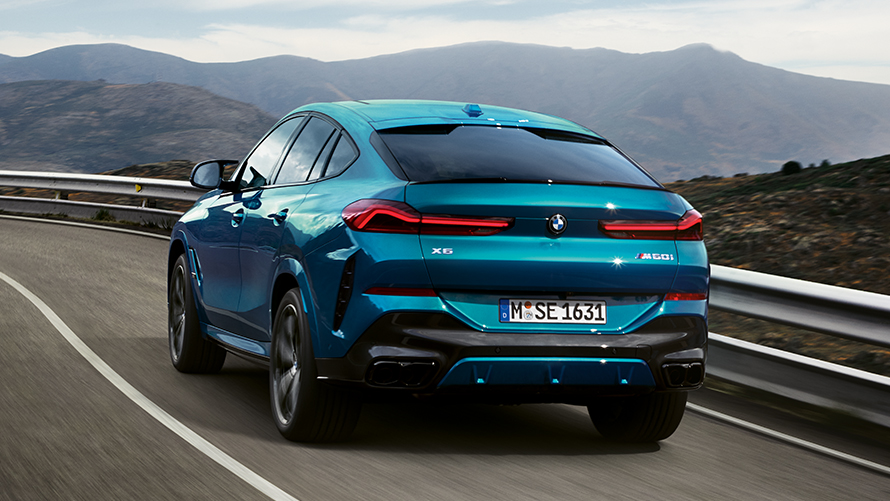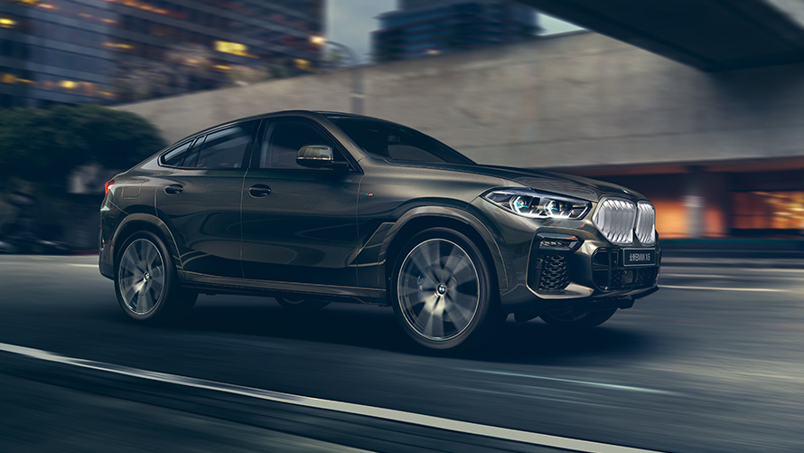 In its fourth generation the BMW X6 focuses entirely on its masculine athleticism and maximum expressive power. And this is the reason why this generation of the BMW X6 is also equipped with the M Sport package as standard. As a result, its defining characteristics include sporty, aerodynamically optimised design features on the exterior in addition to the reworked front section with “Iconic Glow” illumination to highlight the kidney grille. The M High-gloss Shadow line exterior trim, the M-specific tailpipes, the 20” BMW light alloy wheels and the bumpers in M Design front and rear are all guaranteed to attract admiring glances.