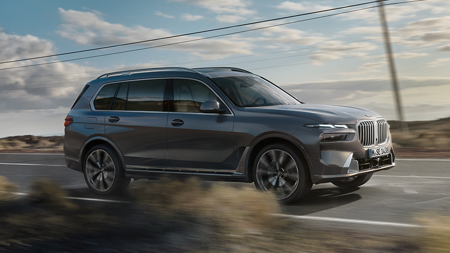 In 2022, the BMW X7 is given a facelift. With the Iconic Glow kidney, its wide stance, and the new exterior colour Sparkling Copper Grey metallic, the SAV presents itself stronger and more elegant than ever: a BMW luxury car to the core. The integrated BMW Curved Display and BMW Operating System 8 ensure an exceptional and innovative digital experience in the cockpit.