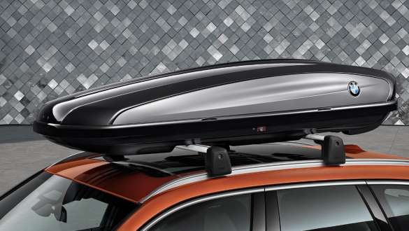 Black/titanium silver lockable roof box, accessible from both sides with a capacity of 420 litres, compatible with all BMW roof rack systems.