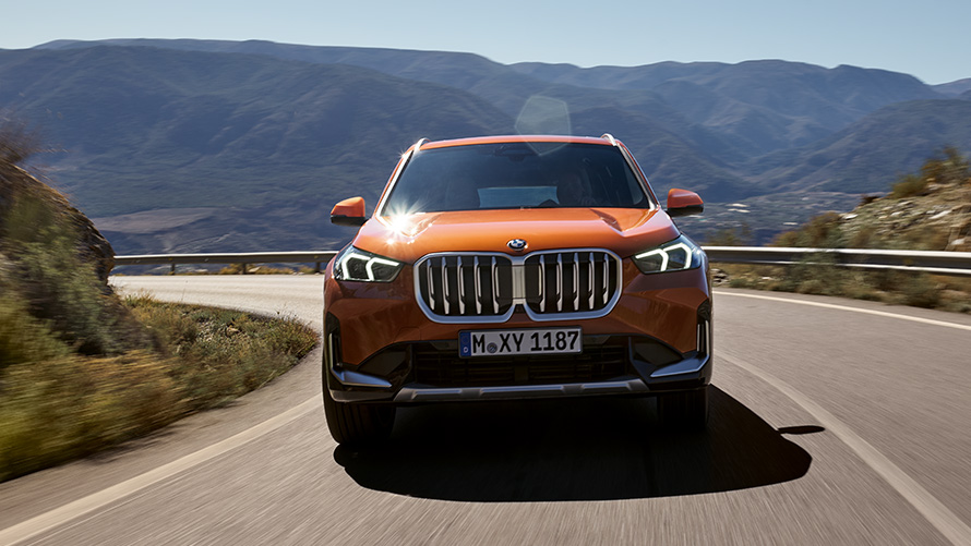 At the centre of the front is the distinctive and large, almost square double kidney grille. In combination with the slim Adaptive LED headlights, extending far into the flanks, the BMW X1 delivers a powerful statement.