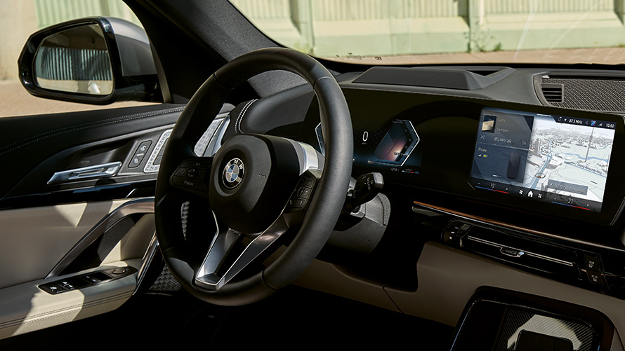 - The modern interior is equipped with high-quality materials and innovations such as the BMW Curved Display