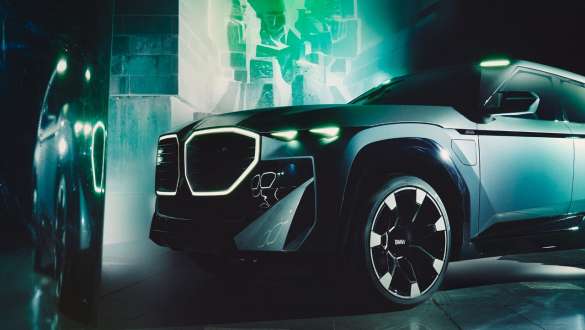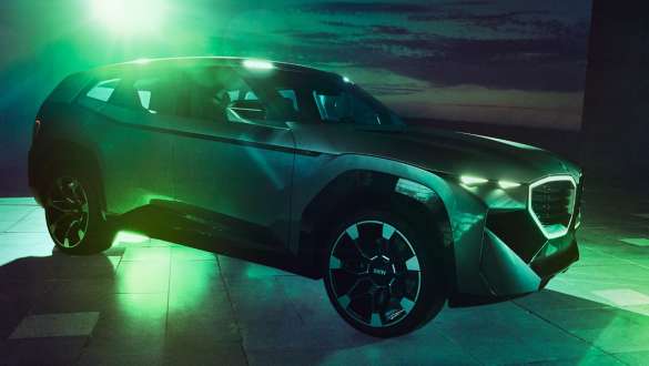 BMW Concept XM (G09) Three-quarter rear view standing close-up XM Logo