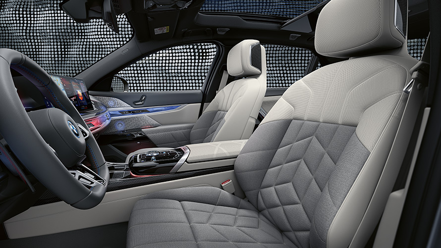 A unique feature: experience pure comfort exclusively in the BMW 7 Series with the luxurious BMW Individual Merino leather/cashmere-wool combination with exclusive features. The luxurious cashmere-wool blend is a fascinating highlight not only because its outstanding softness. Thanks to its hard-wearing and durable properties also make it ideally suitable for use in the interior of your BMW. Breathable and thermally insulating it provides a pleasant temperature for the interior in extremes of heat and cold. The natural and pleasant fragrance rounds off the package, making this a valuable and comfortable upholstery option for all the senses.