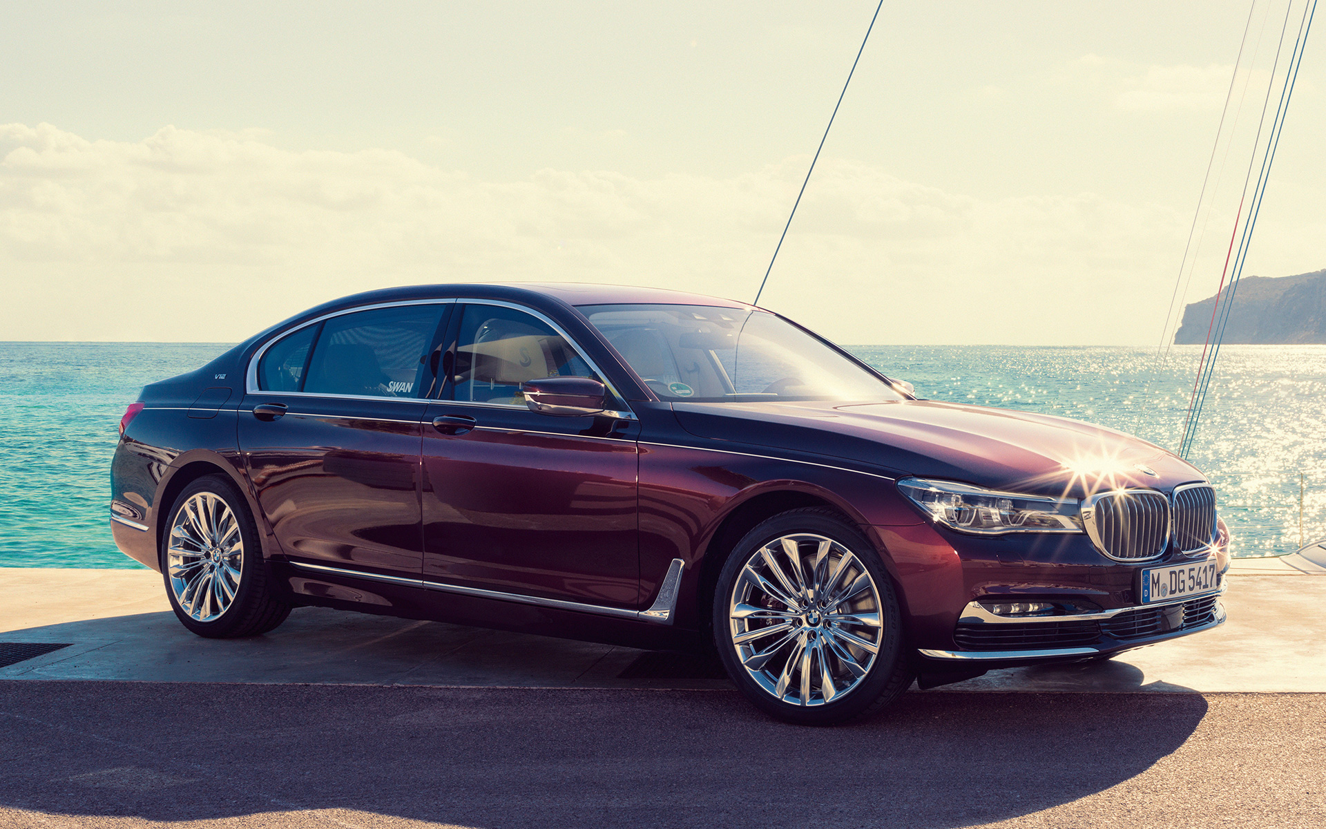 BMW Individual M760Li inspired by Nautor’s Swan G12 2017 in front of sailing yacht