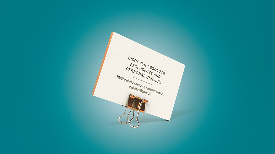 For more information or requests about BMW Individual, please contact your local BMW partner. We will also be happy to provide thorough and timely answers to any special requests you may have concerning the BMW Individual Manufaktur.