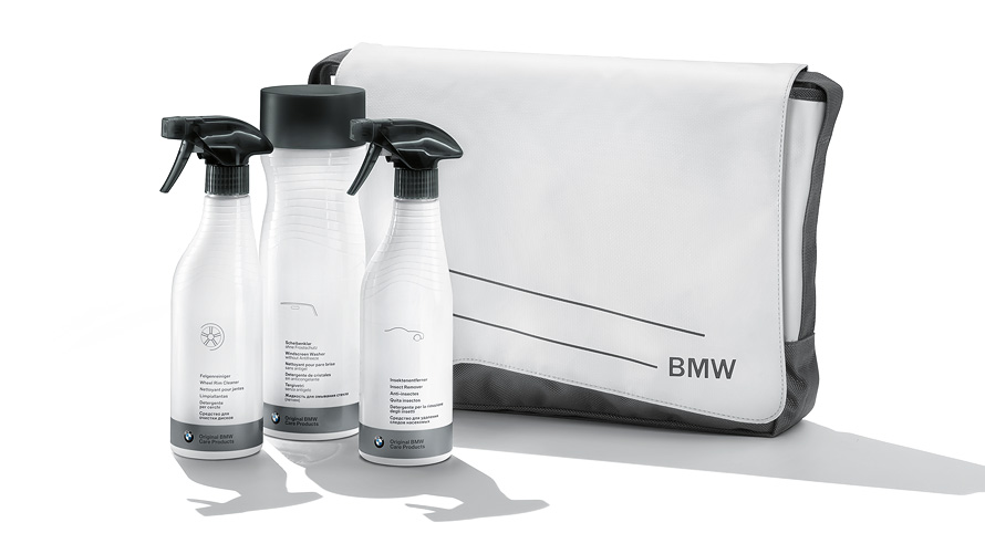 No chance for sun, sand or pollen: The care set products are specially designed for cleaning your BMW in summer. The set includes wheel rim cleaner (500 ml), insect remover (500 ml) and screen wash (1,000 ml), which enable dirt to be removed quickly and easily. To ensure that the products are always at hand, the kit comes with an attractive bag made of easy-to-clean tarpaulin. The simple, yet dynamic design of the bag not only underscores the high quality of the care kit, but also allows it to be used as a laptop bag.