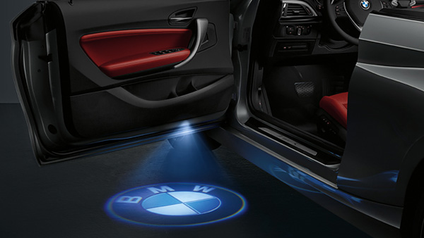 The innovative BMW LED Door Projectors make entering and exiting the vehicle a special experience. When the doors are opened, the BMW LED Door Projectors are activated automatically and beam a graphic onto the ground next to the vehicle – for a unique appearance and a perfectly illuminated entry area.