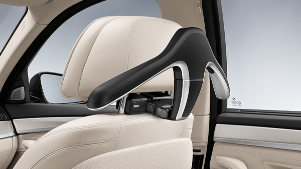 The Travel & Comfort System improves the vehicle's functionality. A variety of system components can be effortlessly latched onto the sturdy basic carrier, which can be easily attached between the headrest pillars. The Travel & Comfort System basic carrier can be used with holders for different Apple iPads (Apple iPad™ 2, 3, 4 or mini), and includes a port for a USB/charging cable and a 360° swivelling frame for the iPad. A practical folding table in an attractive BMW design is height- and angle-adjustable and has an additional integrated cup holder with chrome ring. The clothes hanger makes it possible to hang items of clothing on the rear side of the backrest. It can also be used outside of the car (hotel function). The universal hook makes it possible to safely stow items of clothing or light bags on the rear side of the backrest, protecting them from dirt in the footwell. All system components can be ordered individually.